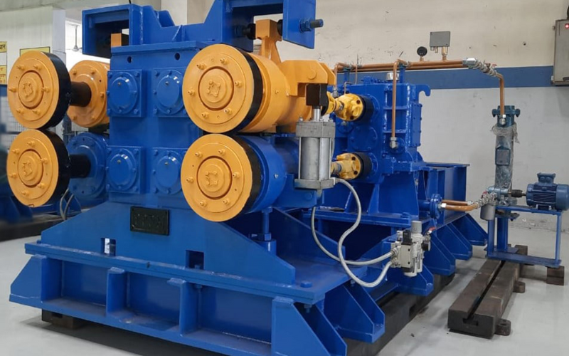 A tail breaker cum pinch roll is a machine in a steel hot rolling mill and slow down the speed of the TMT steel re-Bar or steel bar its been shear (Cut) by a Flying shear and before its send to the Cooling bed, Tail Breaker is essentially a pinch roll system that Controls the TMT Steel Bar velocity.